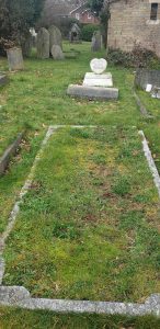 Grave Description: Full kerb set with integral corners, grass infil